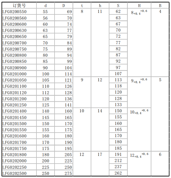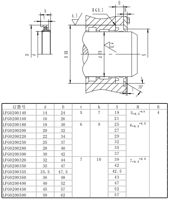 杆径为50mm时的LFG01 防尘密封,标注为:LFG0200500。